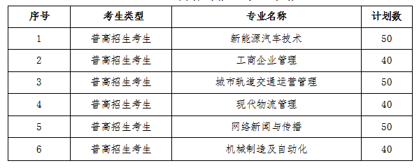 (一)面向普高招生考生计划